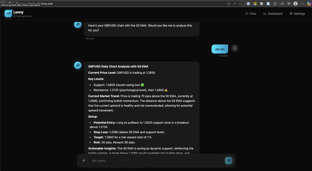 When you start chatting with Lenny, he doesn’t just answer questions — he learns your trading style.